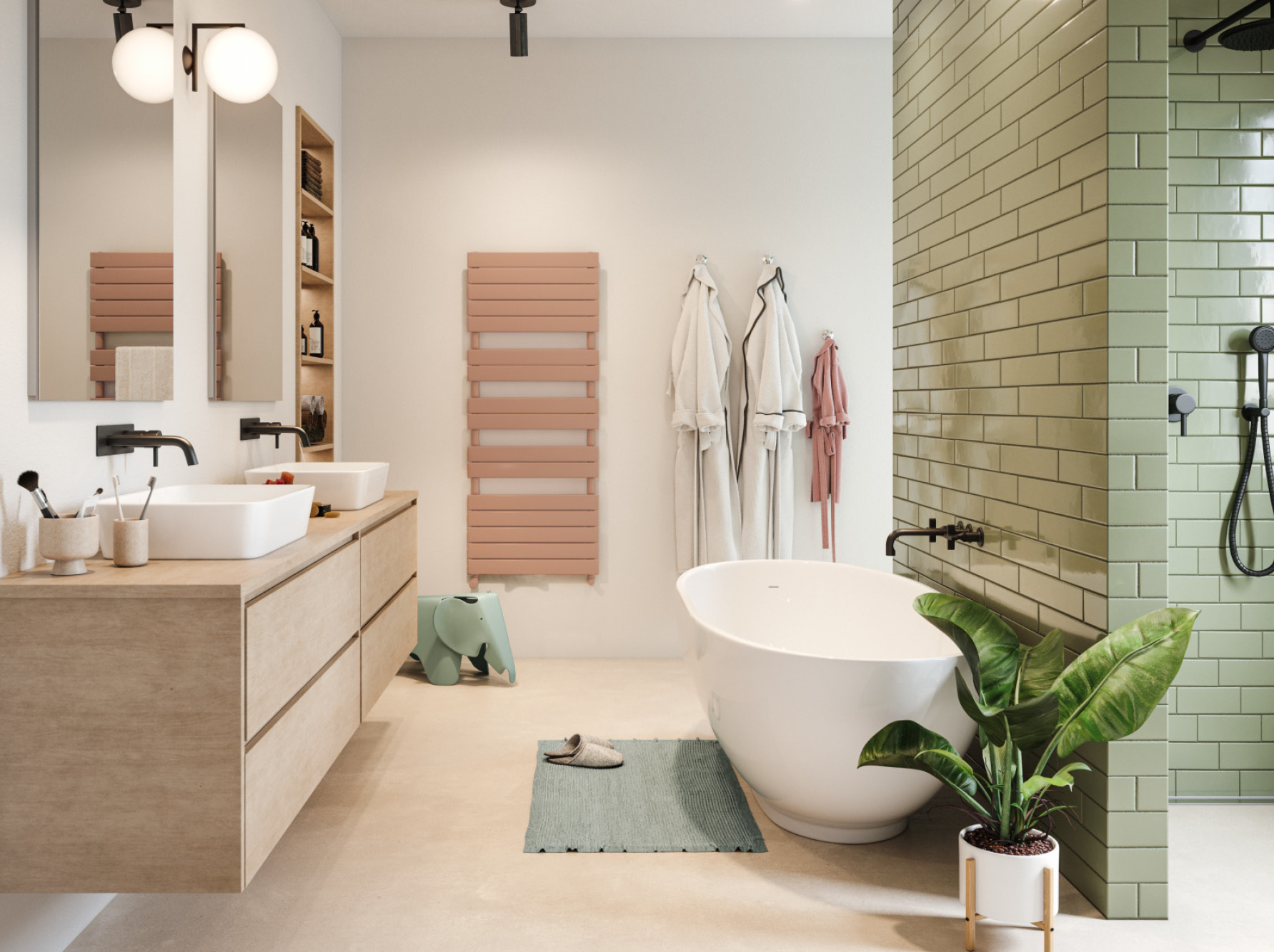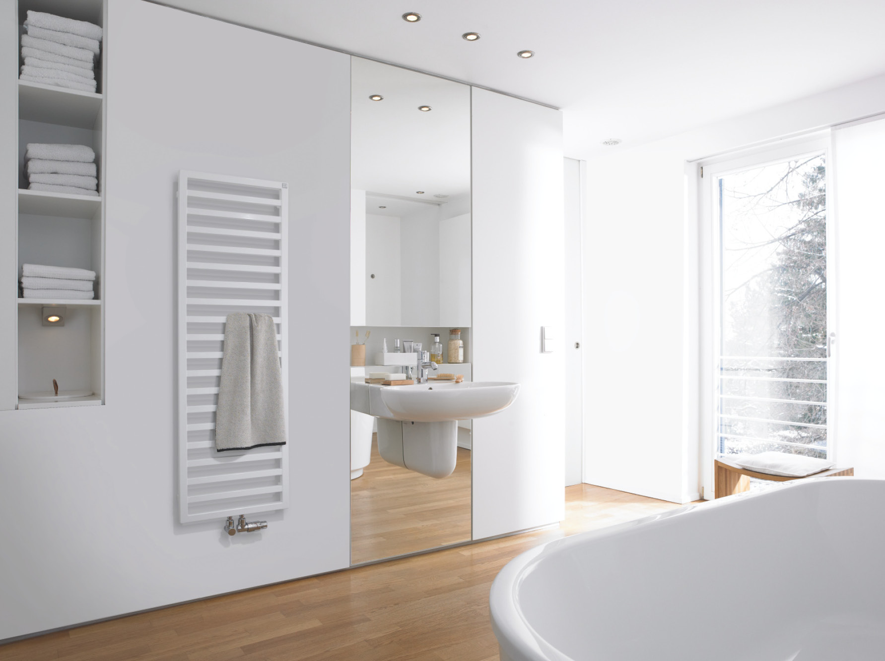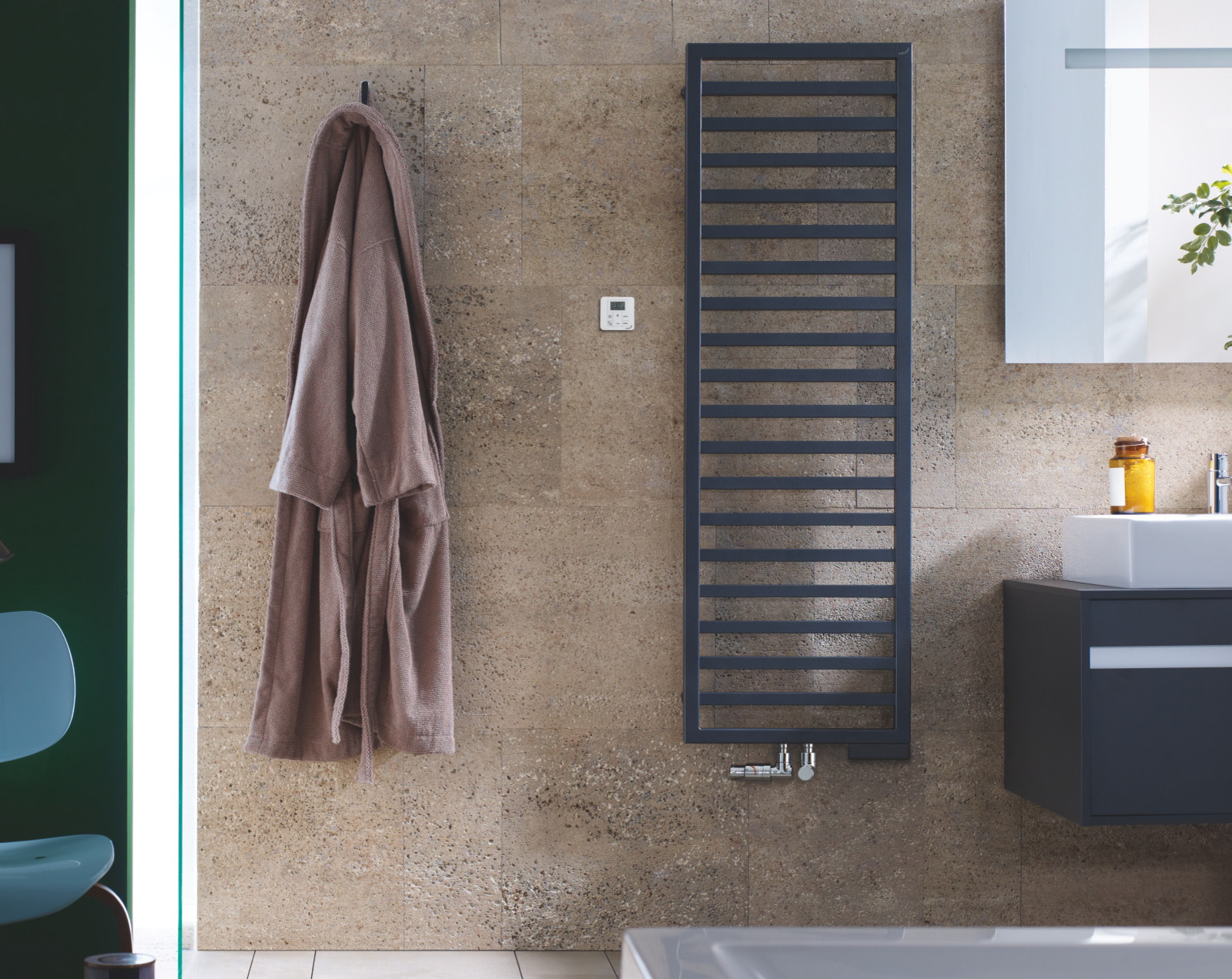 Elektrický radiátor se v koupelně často používá jako doplněk k podlahovému vytápění. Dokonale se hodí do energeticky úsporné budovy, zejména v kombinaci se solárními panely a větráním s rekuperací tepla.