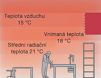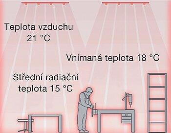 Při vytápění stropními sálavými panely je teplota vzduchu v místnosti nižší než v případě konvekčního teplovzdušného systému vytápění, ale vnímaná teplota je stejná.